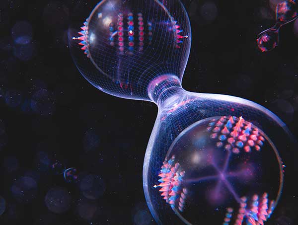 Artist’s impression of two entangled grid-state qubits. Credit: Emma Hyde